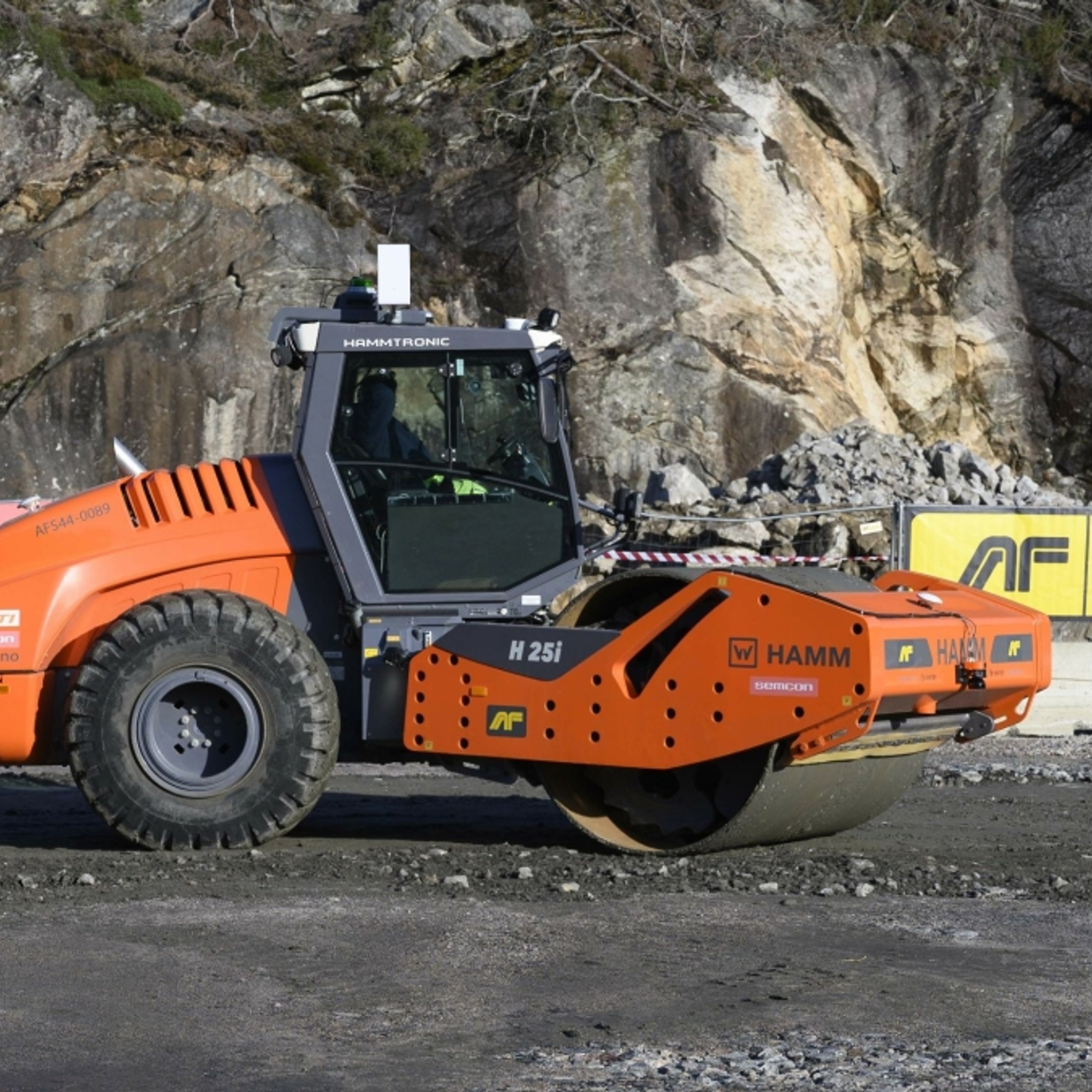 Following a successful proof of concept demonstrated in real conditions, the next step is autonomous operation under controlled settings. Using GPS-based routing, the compactor performs precise, repeatable passes with optimal overlap, ensuring consistent high-quality results. The system is based on a HAMM H25i compactor equipped with optical safety sensors, with additional safety features under development, and is delivered in collaboration with partners including SINTEF and HAMM.