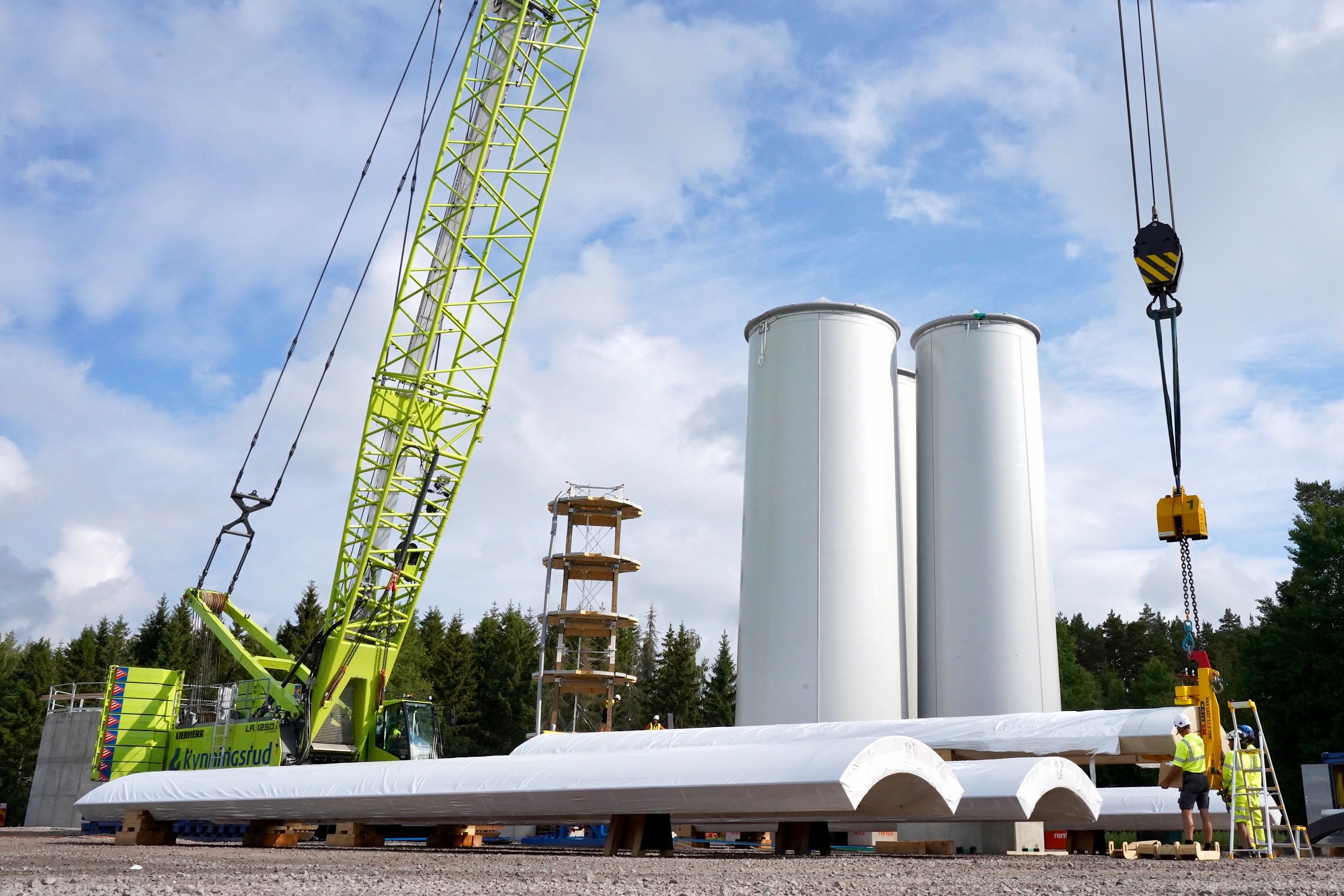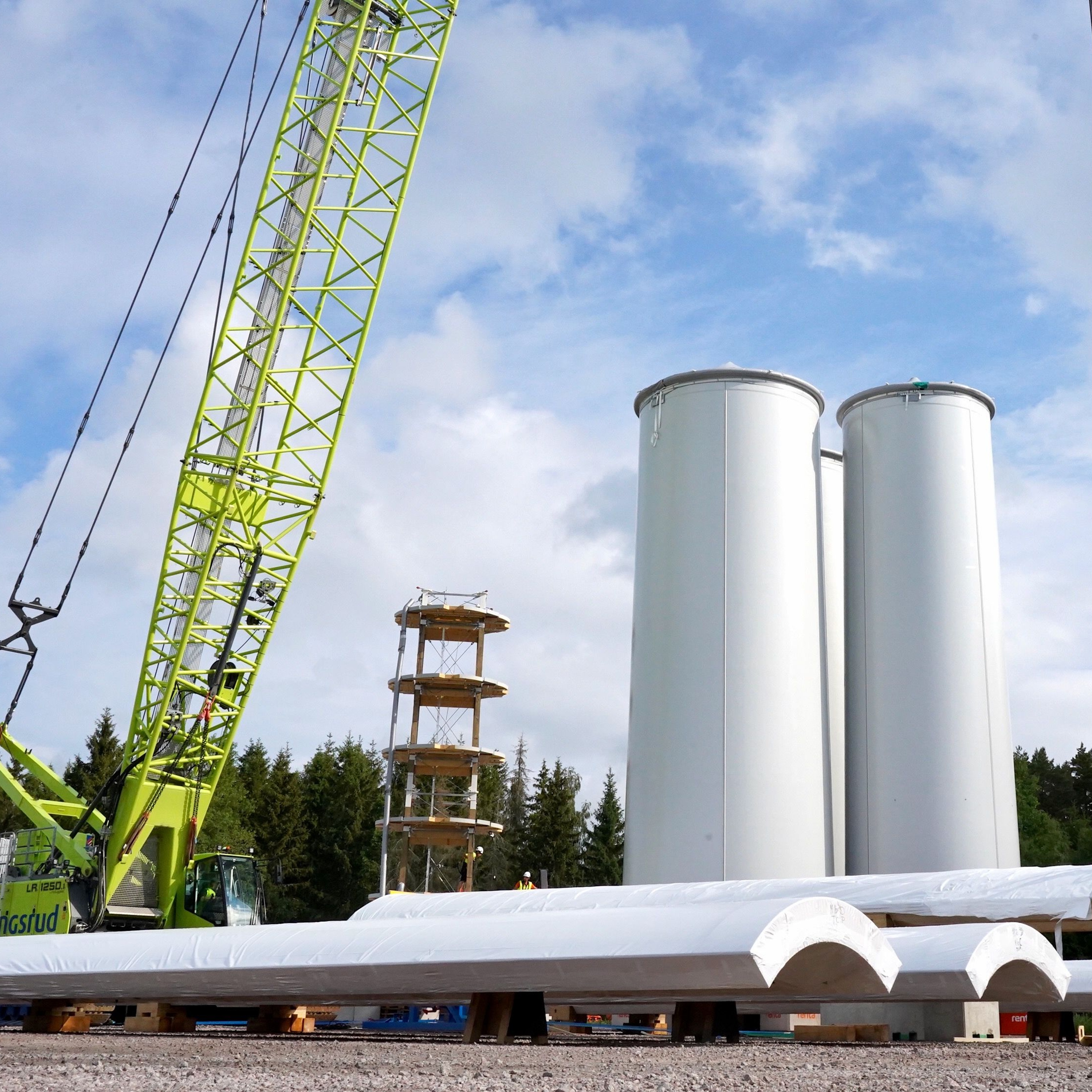 In the fall/winter of 2023, Modvion will inaugurate the world’s tallest wooden wind turbine tower outside Skara. The tower is 105 meters high and the company’s first commercial wind power tower. Once the turbine is mounted the total height of the plant will be 150 metres.
